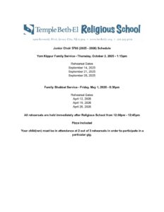 Junior Choir 5786 (2025 – 2026) Schedule